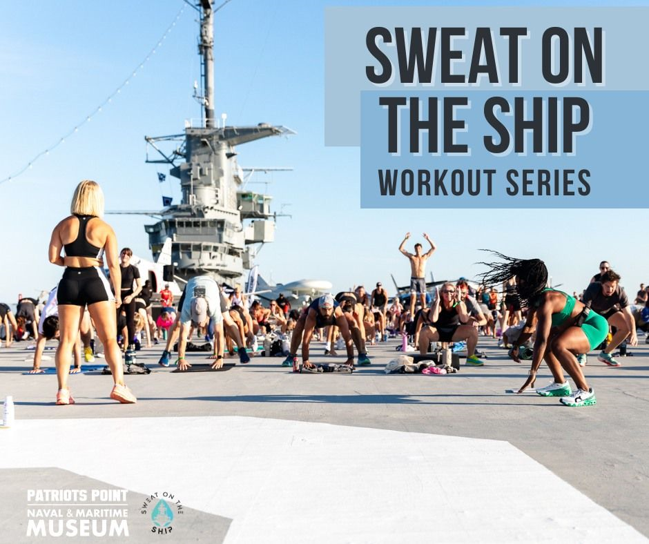 This October, the flight deck transforms for a one-of-a-kind Halloween sweat session as the sun sets over Charleston Harbor. Expect high-energy movement, community vibes, and a spooky twist to your favorite workout on the ship.